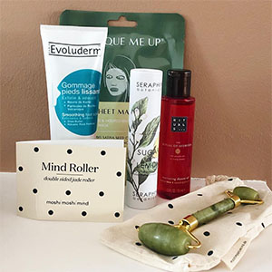 5-7 unikke (inklusiv mindst 2 full size produkter) kuraterede skønheds- og selvplejeprodukter.