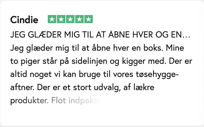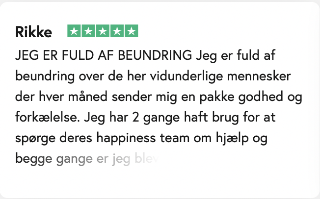 Efter velkomst boksen bliver du ført videre til vores månedlige bokse: intervallet mellem hvornår du vil modtage boksene afhænger af, hvornår du blev medlem – Du kan tjekke dette i din bekræftelses email. Der vil som regel gå 2-3 uger imellem boksene.