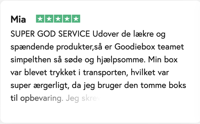Man siger at et godt førstehåndsindtryk betyder alt, og for os betyder den første unboxing alt. Derfor starter du din Goodiebox rejse med vores welcome-box. Det er et stort velkomst kram til dig, så du får den bedste introduktion til mere mig-tid, med en boks fyldt til randen med selvforkælelses produkter. Sorry, not sorry!